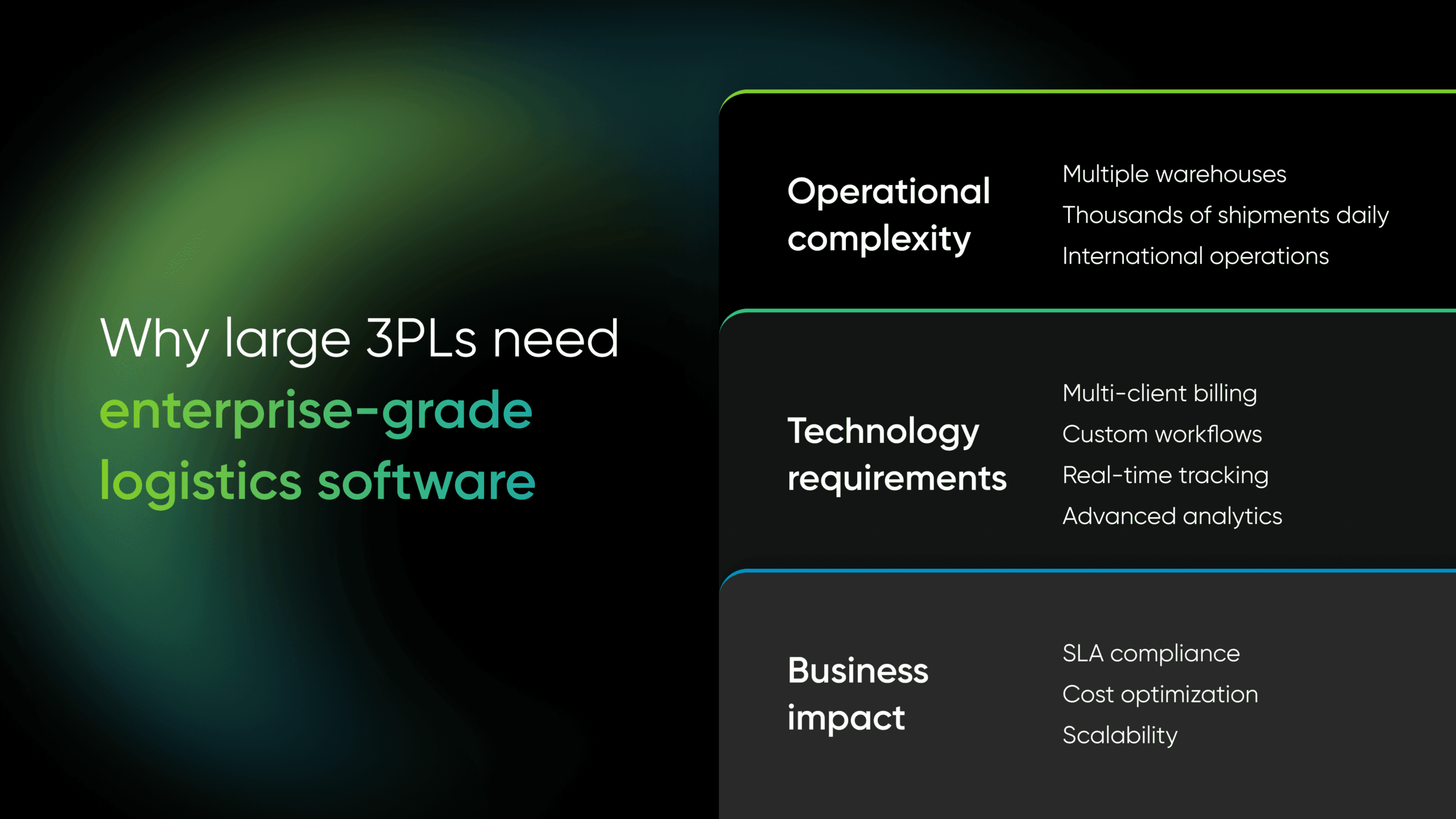 There is no single best software for every company. Small businesses with simpler needs find that an off-the-shelf WMS/TMS platform is the most practical solution. Large 3PLs need full-featured systems or even many integrated tools. If no existing product matches your unique workflow, custom development is worth considering.